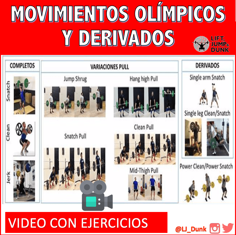 Algunos ejemplos que complementan la infografía de movimientos olímpicos y variantes que nos ayudan a mejorar la fuerza para el baloncesto y para otros deportes.