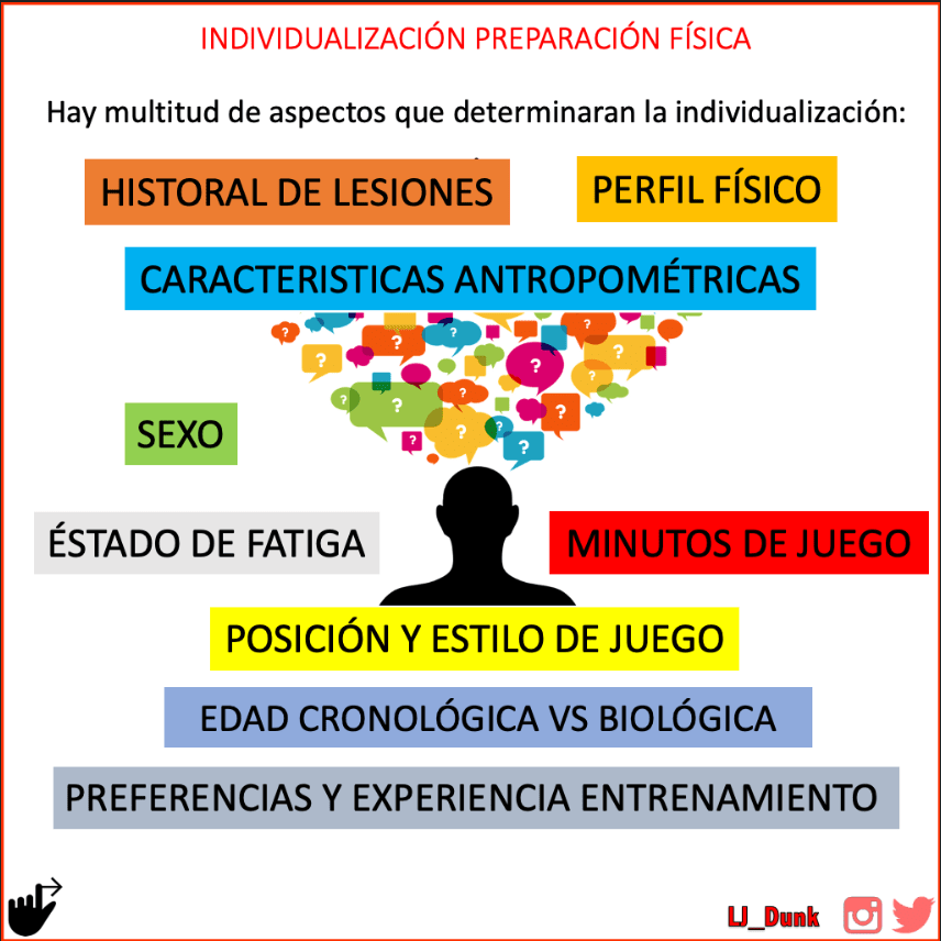 Sin meternos en si este porcentaje puede ser mayor o menor, tener un programa de entrenamiento totalmente diferente para jugador del equipo (lo cual podemos hacer pero con un gran consumo de tiempo) en la gran mayoría de contextos, si hablamos de un PF con un equipo entero a la vez a su cargo, es de difícil aplicación.