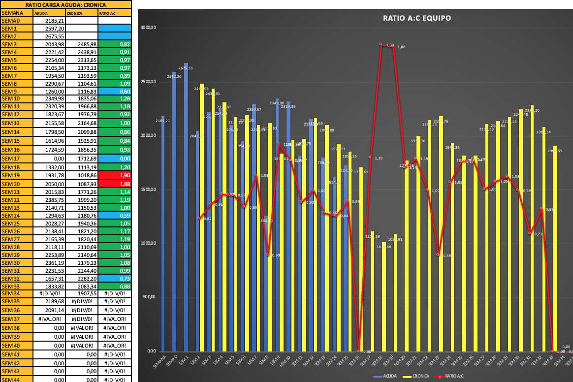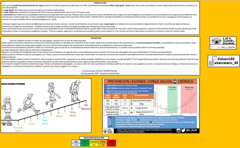 – Hoja de equipo. – Hoja individual. – RPE – Carga aguda: crónica